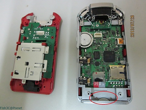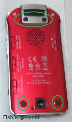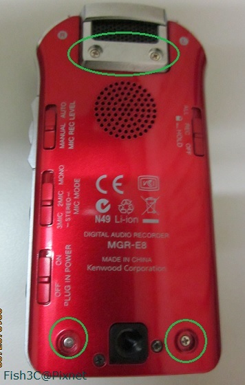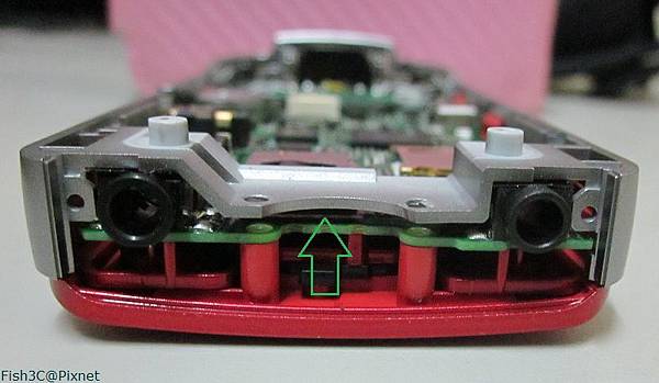 4.打開背蓋後,下方Line out與耳機孔上方兩顆小螺絲要轉開,鬆開Line out與耳機孔面板,就可以成功夾出內建記憶卡,再換上新記憶卡。